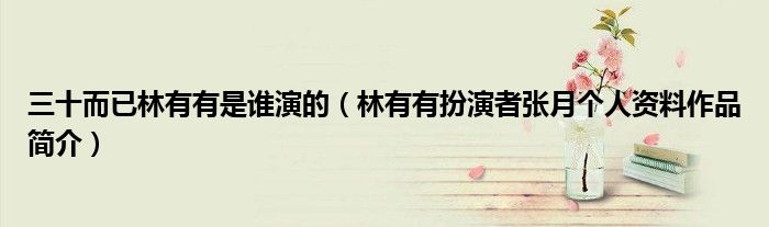 大家好,綜合小編來為大家講解下。三十而已林有有是誰演的,林有有扮演者張月個人資料作品簡介很多人還不知道,現在讓我們一起來看看吧!