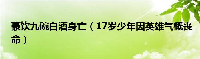 大家好,綜合小編來為大家講解下。豪飲九碗白酒身亡,17歲少年因英雄氣概喪命很多人還不知道,現在讓我們一起來看看吧!