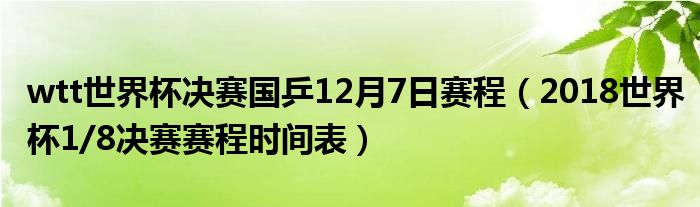 大家好,綜合小編來為大家講解下。wtt世界杯決賽國乒12月7日賽程,2018世界杯1/8決賽賽程時間表很多人還不知道,現在讓我們一起來看看吧!