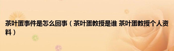 大家好,綜合小編來為大家講解下。茶葉蛋事件是怎么回事,茶葉蛋教授是誰 茶葉蛋教授個人資料很多人還不知道,現在讓我們一起來看看吧!