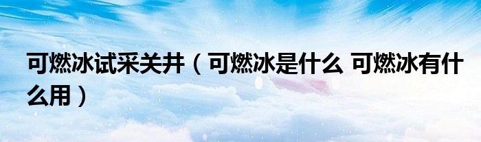 可燃冰試采關井 可燃冰是什么 可燃冰有什么用