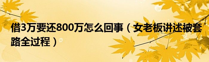 大家好,綜合小編來為大家講解下。借3萬要還800萬怎么回事,女老板講述被套路全過程很多人還不知道,現在讓我們一起來看看吧!