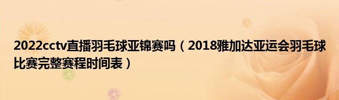 大家好,綜合小編來為大家講解下。2022cctv直播羽毛球亞錦賽嗎,2018雅加達亞運會羽毛球比賽完整賽程時間表很多人還不知道,現在讓我們一起來看看吧!