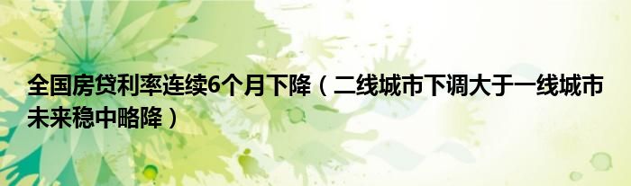 大家好,綜合小編來為大家講解下。全國房貸利率連續6個月下降,二線城市下調大于一線城市未來穩中略降很多人還不知道,現在讓我們一起來看看吧!