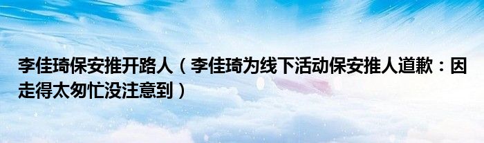 8月21日晚李佳琦就保安推人一事發文道歉,稱自己今天關注到網絡上傳出一段自己7月29日在上海新天地參加某線下活動的視頻,看到視頻后才知道安保打擾到了一位先生,在此表示抱歉,因走得太匆忙沒注意到這件事情。