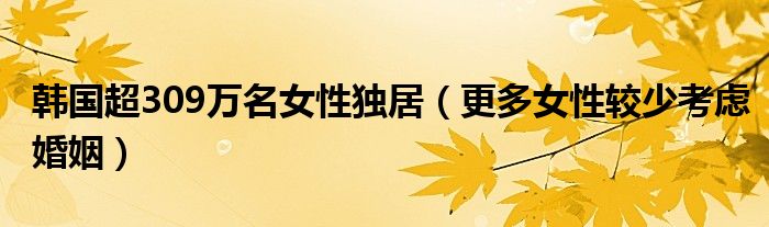 大家好,綜合小編來為大家講解下。韓國超309萬名女性獨居,更多女性較少考慮婚姻很多人還不知道,現在讓我們一起來看看吧!