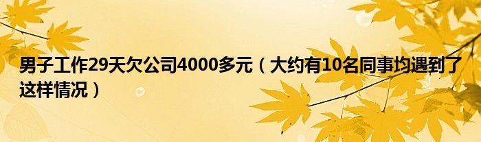 大家好,綜合小編來為大家講解下。男子工作29天欠公司4000多元,大約有10名同事均遇到了這樣情況很多人還不知道,現(xiàn)在讓我們一起來看看吧!