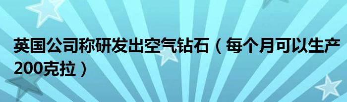 大家好,綜合小編來為大家講解下。英國公司稱研發出空氣鉆石,每個月可以生產200克拉很多人還不知道,現在讓我們一起來看看吧!