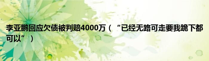 大家好,綜合小編來為大家講解下。李亞鵬回應欠債被判賠4000萬,“已經(jīng)無路可走要我跪下都可以”很多人還不知道,現(xiàn)在讓我們一起來看看吧!