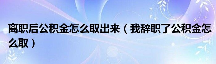 大家好,綜合小編來為大家講解下。離職后公積金怎么取出來,我辭職了公積金怎么取很多人還不知道,現在讓我們一起來看看吧!