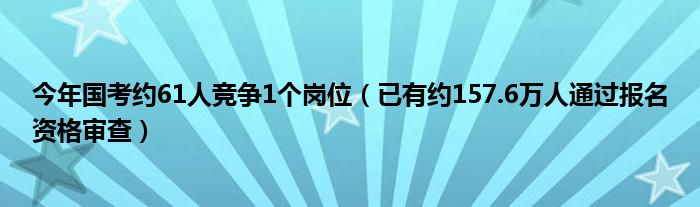 大家好,綜合小編來為大家講解下。今年國考約61人競爭1個崗位,已有約157.6萬人通過報名資格審查很多人還不知道,現(xiàn)在讓我們一起來看看吧!