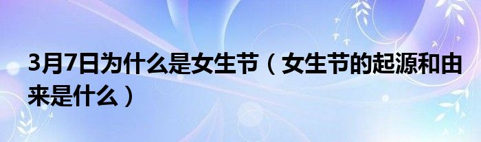 大家好,綜合小編來為大家講解下。3月7日為什么是女生節,女生節的起源和由來是什么很多人還不知道,現在讓我們一起來看看吧!