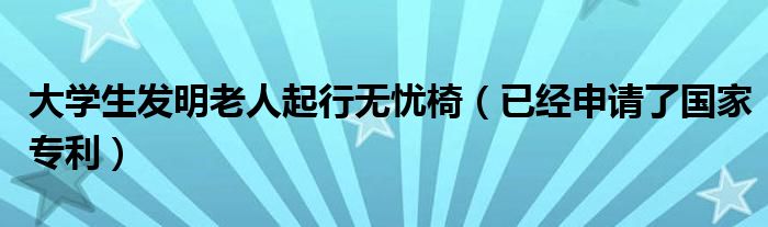 大家好,綜合小編來為大家講解下。大學(xué)生發(fā)明老人起行無憂椅,已經(jīng)申請了國家專利很多人還不知道,現(xiàn)在讓我們一起來看看吧!