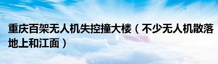 大家好,綜合小編來為大家講解下。重慶百架無人機失控撞大樓,不少無人機散落地上和江面很多人還不知道,現(xiàn)在讓我們一起來看看吧!