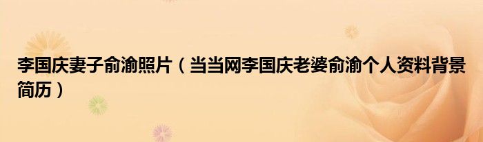 大家好,綜合小編來為大家講解下。李國慶妻子俞渝照片,當當網(wǎng)李國慶老婆俞渝個人資料背景簡歷很多人還不知道,現(xiàn)在讓我們一起來看看吧!