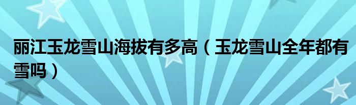 大家好,綜合小編來為大家講解下。麗江玉龍雪山海拔有多高,玉龍雪山全年都有雪嗎很多人還不知道,現在讓我們一起來看看吧!