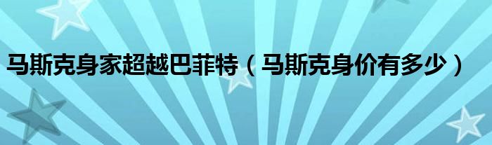 大家好,綜合小編來為大家講解下。馬斯克身家超越巴菲特,馬斯克身價有多少很多人還不知道,現在讓我們一起來看看吧!