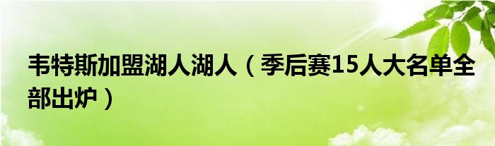 大家好,綜合小編來為大家講解下。韋特斯加盟湖人湖人,季后賽15人大名單全部出爐很多人還不知道,現在讓我們一起來看看吧!