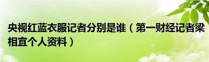 大家好,綜合小編來為大家講解下。央視紅藍衣服記者分別是誰,第一財經記者梁相宜個人資料很多人還不知道,現在讓我們一起來看看吧!