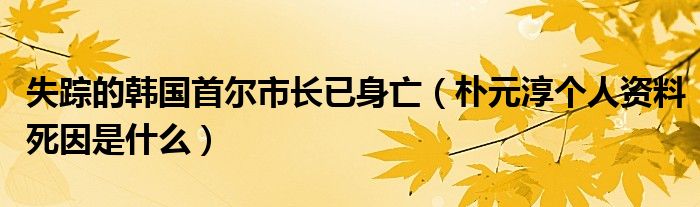 大家好,綜合小編來為大家講解下。失蹤的韓國首爾市長已身亡,樸元淳個人資料死因是什么很多人還不知道,現在讓我們一起來看看吧!