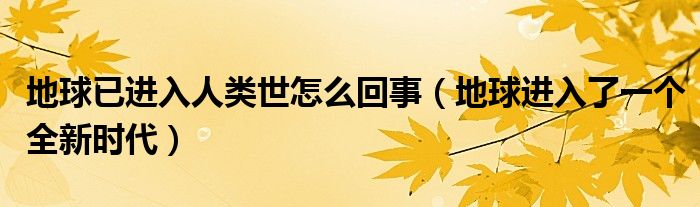 地球已經進入了一個全新的時代