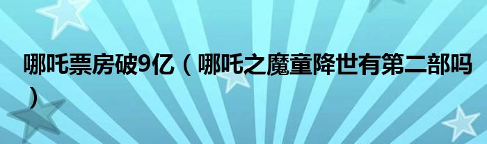 大家好,綜合小編來為大家講解下。哪吒票房破9億,哪吒之魔童降世有第二部嗎很多人還不知道,現在讓我們一起來看看吧!