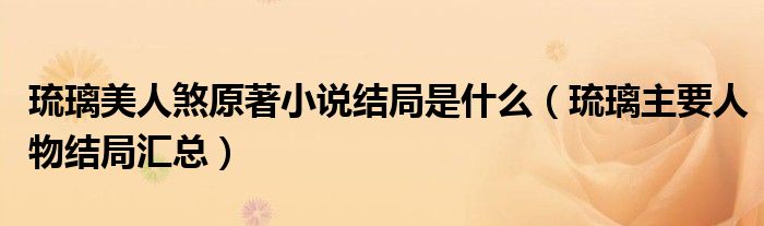 大家好,綜合小編來為大家講解下。琉璃美人煞原著小說結局是什么,琉璃主要人物結局匯總很多人還不知道,現在讓我們一起來看看吧!