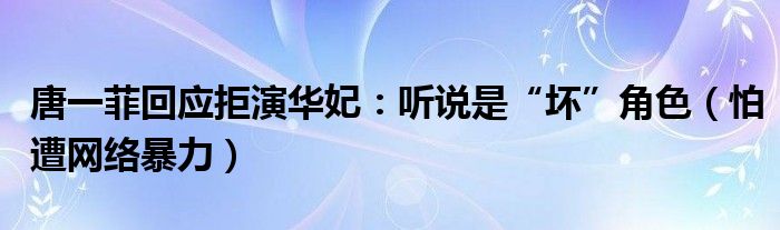 大家好,綜合小編來為大家講解下。唐一菲回應拒演華妃:聽說是“壞”角色,怕遭網絡暴力很多人還不知道,現在讓我們一起來看看吧!