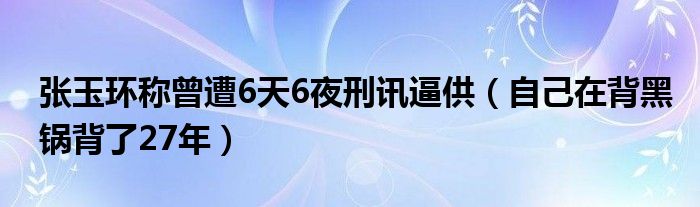 大家好,綜合小編來為大家講解下。張玉環(huán)稱曾遭6天6夜刑訊逼供,自己在背黑鍋背了27年很多人還不知道,現(xiàn)在讓我們一起來看看吧!