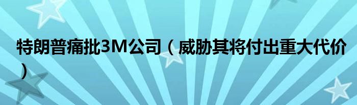 大家好,綜合小編來為大家講解下。特朗普痛批3M公司,威脅其將付出重大代價很多人還不知道,現在讓我們一起來看看吧!