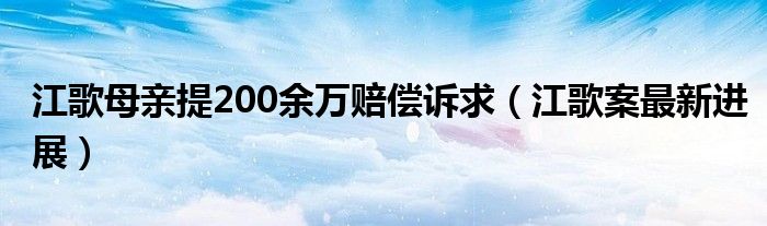 大家好,綜合小編來為大家講解下。江歌母親提200余萬賠償訴求,江歌案最新進(jìn)展很多人還不知道,現(xiàn)在讓我們一起來看看吧!