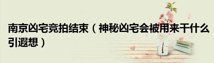 大家好,綜合小編來為大家講解下。南京兇宅競拍結(jié)束,神秘兇宅會被用來干什么引遐想很多人還不知道,現(xiàn)在讓我們一起來看看吧!