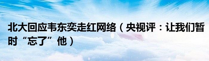 大家好,綜合小編來為大家講解下。北大回應韋東奕走紅網絡,央視評:讓我們暫時“忘了”他很多人還不知道,現在讓我們一起來看看吧!