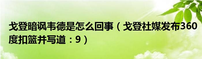 大家好,綜合小編來為大家講解下。戈登暗諷韋德是怎么回事,戈登社媒發布360度扣籃并寫道:9很多人還不知道,現在讓我們一起來看看吧!