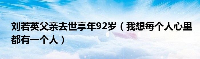 大家好,綜合小編來為大家講解下。劉若英父親去世享年92歲,我想每個人心里都有一個人很多人還不知道,現在讓我們一起來看看吧!