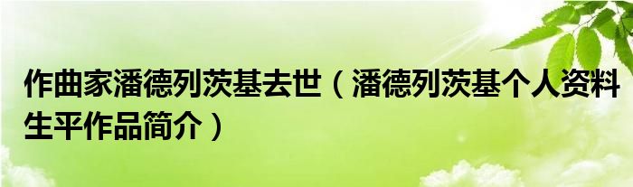 大家好,綜合小編來為大家講解下。作曲家潘德列茨基去世,潘德列茨基個人資料生平作品簡介很多人還不知道,現(xiàn)在讓我們一起來看看吧!