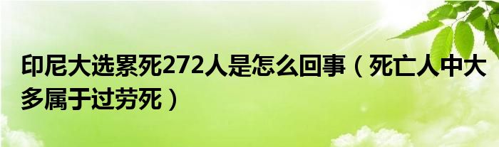 大家好,綜合小編來為大家講解下。印尼大選累死272人是怎么回事,死亡人中大多屬于過勞死很多人還不知道,現在讓我們一起來看看吧!
