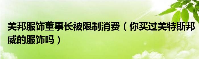 大家好,綜合小編來為大家講解下。美邦服飾董事長被限制消費(fèi),你買過美特斯邦威的服飾嗎很多人還不知道,現(xiàn)在讓我們一起來看看吧!