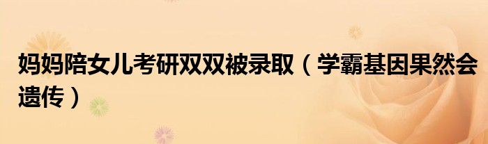 大家好,綜合小編來為大家講解下。媽媽陪女兒考研雙雙被錄取,學霸基因果然會遺傳很多人還不知道,現在讓我們一起來看看吧!