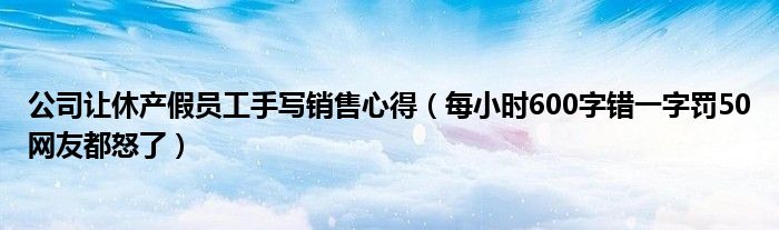 大家好,綜合小編來為大家講解下。公司讓休產假員工手寫銷售心得,每小時600字錯一字罰50網友都怒了很多人還不知道,現在讓我們一起來看看吧!