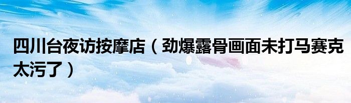 大家好,綜合小編來為大家講解下。四川臺夜訪按摩店,勁爆露骨畫面未打馬賽克太污了很多人還不知道,現(xiàn)在讓我們一起來看看吧!