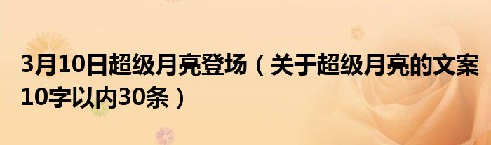 大家好,綜合小編來(lái)為大家講解下。3月10日超級(jí)月亮登場(chǎng),關(guān)于超級(jí)月亮的文案10字以內(nèi)30條很多人還不知道,現(xiàn)在讓我們一起來(lái)看看吧!