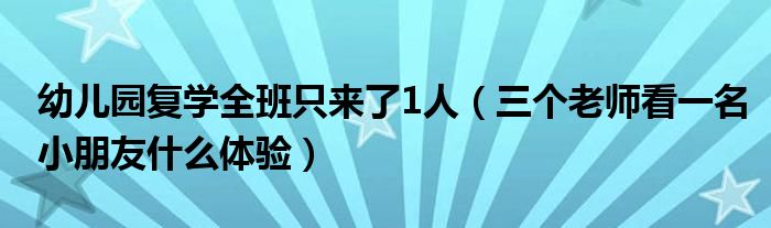 大家好,綜合小編來為大家講解下。幼兒園復(fù)學(xué)全班只來了1人,三個(gè)老師看一名小朋友什么體驗(yàn)很多人還不知道,現(xiàn)在讓我們一起來看看吧!
