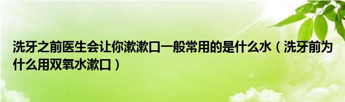 大家好,綜合小編來為大家講解下。洗牙之前醫生會讓你漱漱口一般常用的是什么水,洗牙前為什么用雙氧水漱口很多人還不知道,現在讓我們一起來看看吧!