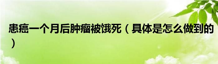 大家好,綜合小編來為大家講解下。患癌一個月后腫瘤被餓死,具體是怎么做到的很多人還不知道,現(xiàn)在讓我們一起來看看吧!