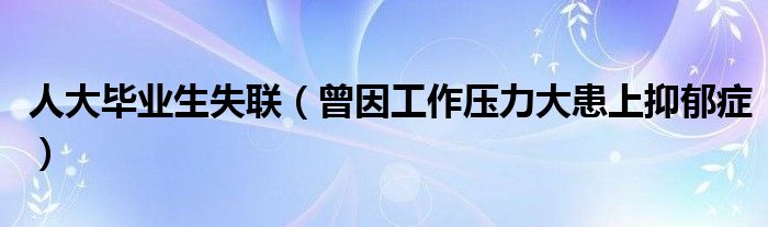 大家好,綜合小編來(lái)為大家講解下。人大畢業(yè)生失聯(lián),曾因工作壓力大患上抑郁癥很多人還不知道,現(xiàn)在讓我們一起來(lái)看看吧!