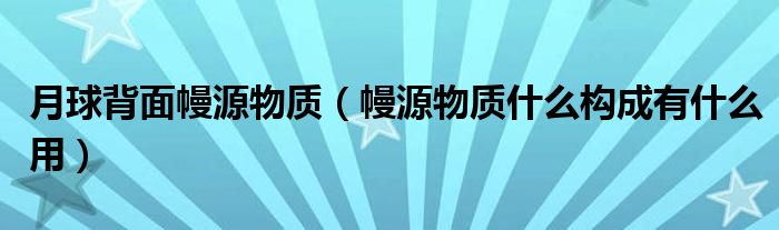 大家好,綜合小編來為大家講解下。月球背面幔源物質,幔源物質什么構成有什么用很多人還不知道,現在讓我們一起來看看吧!