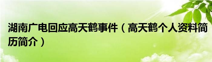 大家好,綜合小編來為大家講解下。湖南廣電回應高天鶴事件,高天鶴個人資料簡歷簡介很多人還不知道,現在讓我們一起來看看吧!