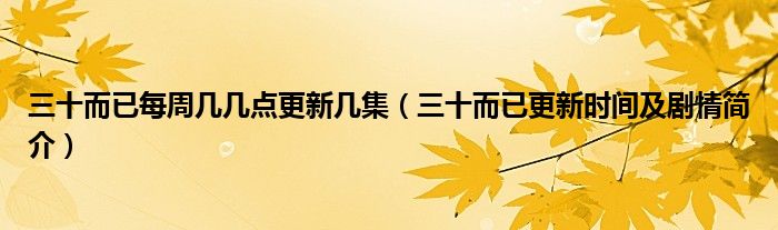 大家好,綜合小編來為大家講解下。三十而已每周幾幾點更新幾集,三十而已更新時間及劇情簡介很多人還不知道,現(xiàn)在讓我們一起來看看吧!