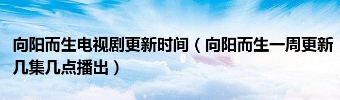 大家好,綜合小編來為大家講解下。向陽而生電視劇更新時間,向陽而生一周更新幾集幾點播出很多人還不知道,現(xiàn)在讓我們一起來看看吧!